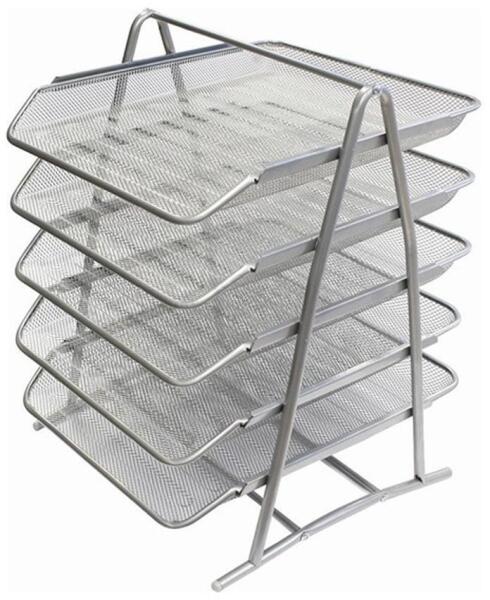Fémhálós kivitelű ötszintes irattartó tálca, A/4 -es méretű iratok tárolására, ezüst színben