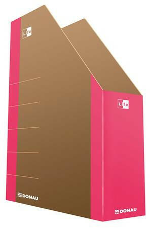 Iratpapucs, karton, 80 mm, DONAU "Life", neon rózsaszín - A4 méretű dokumentumok tárolására alkalmas - alapanyag: 1,2 mm vastagságú karton (800 g/m2) - FSC tanúsítvány - gerincvastagság: 80 mm - kapacitás: kb. 500 ív 80 g papír - feliratozható gerinc - könnyen összeállítható, összehajtható
