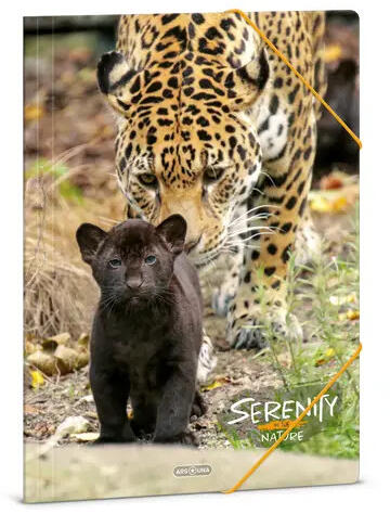 Dosszié borítóján jaguáros fotóval Méret: A/4-es (240x330 mm) Anyaga: 350 gr-os, vastag karton Színes gumipánttal zárható