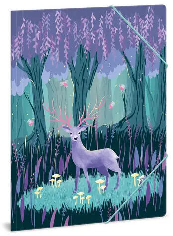 Szarvasos grafikával díszített dosszié Méret: A/4-es (240x330 mm) Anyaga: 350 gr-os, vastag karton Színes gumipánttal zárható
