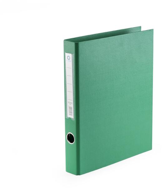 Közkedvelt iratrendező. Kívül műanyag, belül papírborítású. 5 cm-es gerinc. A gerincre hegesztett címketaró 195 mm hosszú. A cserélhető címke egyszínnyomott. Kihúzógyűrűvel ellátva. Az iratrendező záródását az elején elhelyezett 2 db acélgyűrű biztosítja. Az iratok lefűzése karos, kétkapcsos szerkezettel, fém leszorítóval történik.