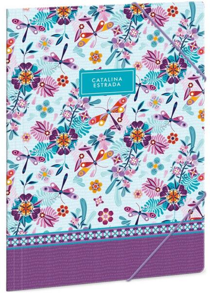Vidám, virágos grafikájával díszített A/4 méretű gumis dosszié iratok, füzetek tárolására. 350 gr-os vastag kartonból, színes gumi zárópánttal. Méret: A/4-es (240x330 mm) Anyaga: 350 gr-os, vastag karton