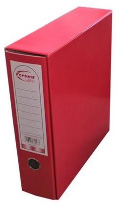 Közkedvelt, kívül műanyag, belül papírborítású Fortuna iratrendező. Az gerincen címketartó található, cserélhető, egyszínnyomott Fortuna címkével, kihúzógyűrűvel ellátva. Az iratrendező záródását az elején elhelyezett 2 db acélgyűrű biztosítja. Az iratok lefűzése karos, kétkapcsos szerkezettel, fém leszorítóval történik. Kérdése van, esetleg nem találja