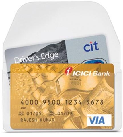Praktikus, átlátszó, öntapadó névjegykártyatartó tok. A lehajtható fül megakadályozza a kártyák elvesztését.