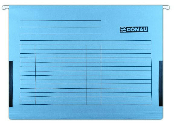 Függőmappa oldalvédelemmel DONAU A/4 karton kék 25 darabos Függőmappák dokumentumok nyilvántartásához és tárolásához. A belsejében lévő tömör fémrúd meghosszabbítja a termék élettartamát. Az előnyomtatott táblázatnak köszönhetően a teljes felülete feliratozható. A mappák mozgatható műanyag csúszkákat tartalmaznak cserélhető címkével. Az oldallapok rögzít