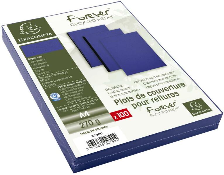 Exacompta sötétkék bőr hatású karton (A4, 270 g) A4-es formátumú, újrahasznosított, bőr hatású kemény kartonborító Spirál-, puhakötésű vagy kapcsos kötésekhez használható Kék Angyal tanúsítvánnyal, a környezetet tiszteletben tartó, minőségi, újrahasznosított termék biztosítéka Méret: 21 x 29,7 cm További információk:A feltüntetett ár 1 db termékre vonatk