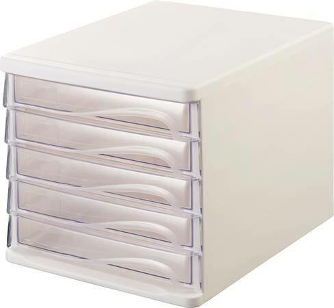 Irattároló, műanyag, 5 fiókos, HELIT, fehér/áttetsző - 5 fiókos változat - a fiókok könnyen nyithatóak - A4 méretig alkalmas dokumentumok tárolására - fiók belső mérete: 235x35x315 mm (szé x ma x mé) - ergonomikus dizájn a fiók elején a könnyű hozzáférés érdekében - címkével feliratozható fiókok - erős, fehér vagy áttetsző fehér színű, PP, ütésálló vá