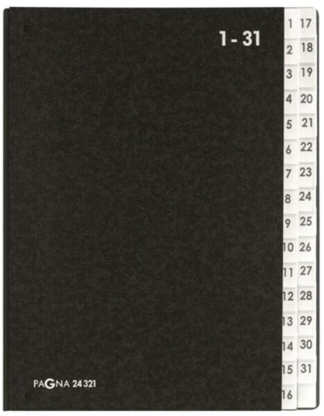 32 rekeszes előrendező szürke kartonból, laminált papír borítással és szennyeződéstaszító színes borítóval. 1-31-ig címkézett, PP indexfülekkel. A bővíthető gerincnek köszönhetően az irattartó különösen nagy kapacitással rendelkezik. A fekete, szakadásálló lapok érdes felülete megakadályozza a dokumentumok véletlenszerű kicsúszását. Méret: 265 x 340 x 35 m