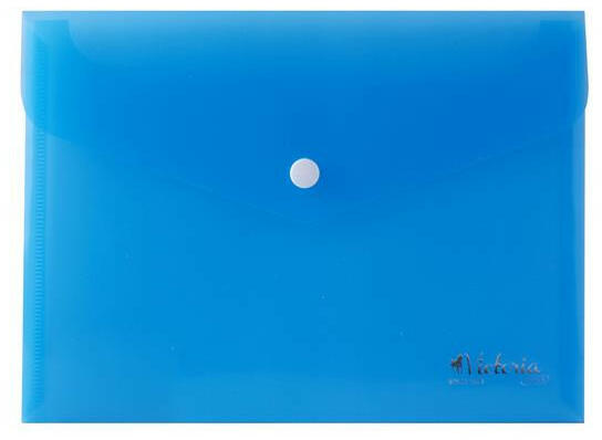 Irattartó tasak, A5, PP, patentos, VICTORIA OFFICE, kék -A5 méretű, félbehajtott A4-es dokumentumok tárolására -rugalmas, áttetsző polipropilén alapanyag -patent segítségével könnyen záródik -alapanyaga 180 mikron vastag -a behelyezett dokumentumok lyukasztást nem igényelnek