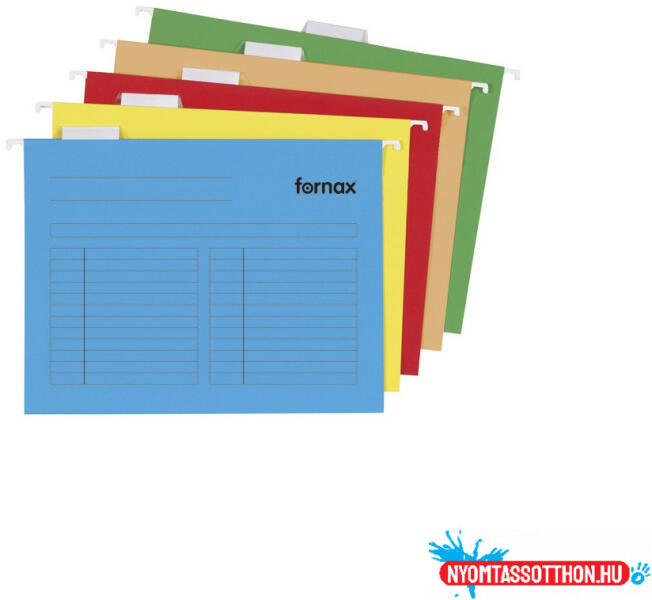 Függőmappa A4, karton oldalzárt Fornax 33-V zöld Az oldaltzárt függőmappák megfelelnek az európai standard előírásainak /fesztávolság 330 mm/. Lehetővé teszik nagyszámú irat gyors és egyszerű kikeresését, valamint lefűzés nélküli helytakarékos elhelyezését. Fém fülek. Karton alapanyaga: 230 g/m2