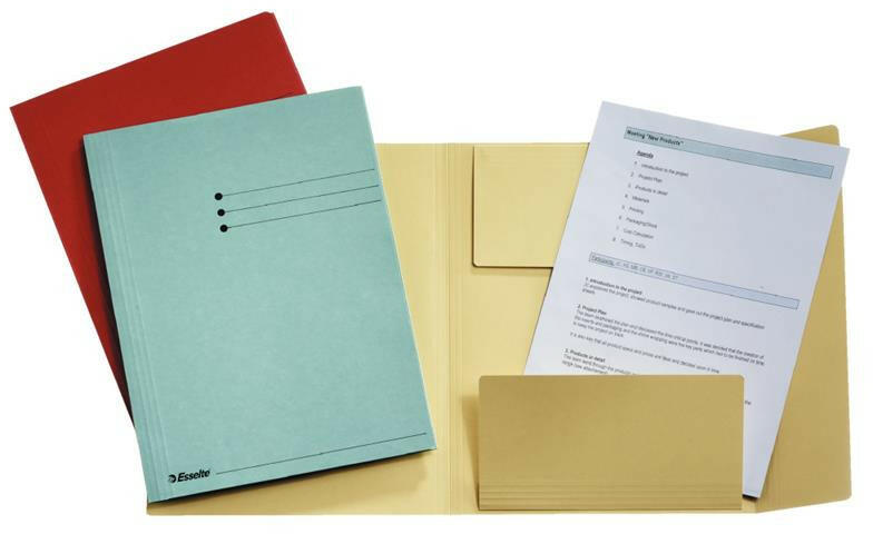 Pólyás dosszié, prespán, A4, ESSELTE, kagyló 3-pólyás mappa dokumentumok tárolásához az irodában, otthon, iskolában egyaránt tartós használat a vastag, erős karton alapanyagnak köszönhetően kiváló minőségű, 100%-ban szűz rosttartalmú, FSC minősített karton igényes kivitelű, szupererős prespán (enyhén fényes) karton alapanyagból készült kapacitás: kb 150 lap