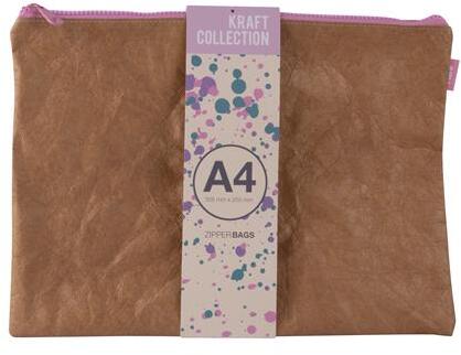 Rendszerező tasak az új ""Kraft"" kollekció részeként. - kiválóan alkalmas dokumentumok, rajzok, telefon vagy egyéb tárgyak (írószerek, gyógyszer stb. ) tárolására - egyedi bőrhatású textúrával és színes cipzárral - különleges és ellenálló anyagból készül - könnyű tisztítani, vízálló - anyaga: nagy sűrűségű polietilén - mérete: A4 (355 mm x 255 mm) - vegy