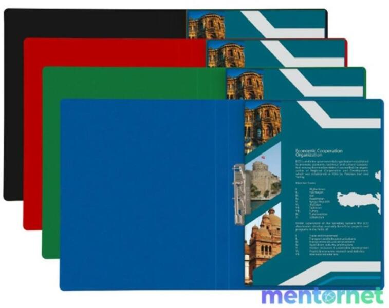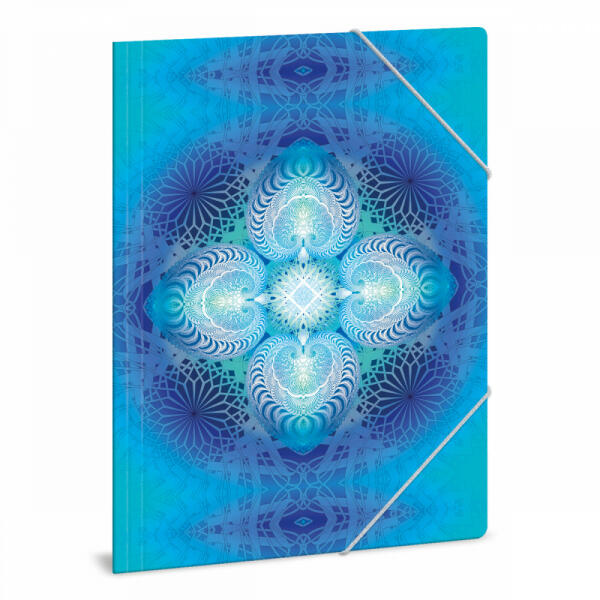 A/4 méretű gumis dosszié iratok, füzetek tárolására. 350 gr-os vastag kartonból készült dosszié lekerekített első sarkokkal, színes gumi zárópánttal. Külseje négy színnel, fényes fóliával nyomott. Belső oldala nyomatlan.
