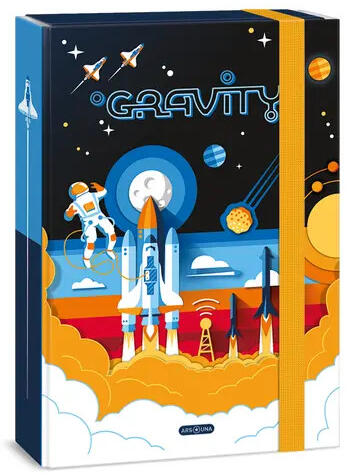 A/4-es füzetbox űrhajós grafikával Munkafüzetek, rajzok, iratok tárolására Anyaga: kemény, tartós karton 7 mm vastag, erős gumipánttal zárható TIPP! Akár táska helyett is használható! Méret:230x335x45 mm