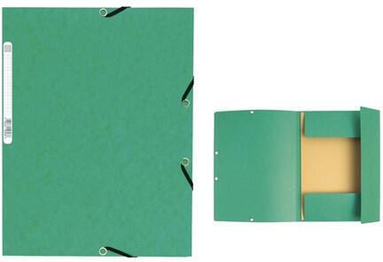 Exacompta márványozott mintájú, prespán karton ból készült gumis mappa A/4 -es méretű dokumentumok tárolására. Gerinccímkével és két gumiszalaggal ellátott. Belül három pólyát tartalmaz, a dokumentumok biztos tárolása érdekében. Szín: zöld . Méret: 240 x 320 mm . Kapacitás: 250 lap . Anyagvastagság: 355g/m 2 . FSC minősítés sel rendelkezik .