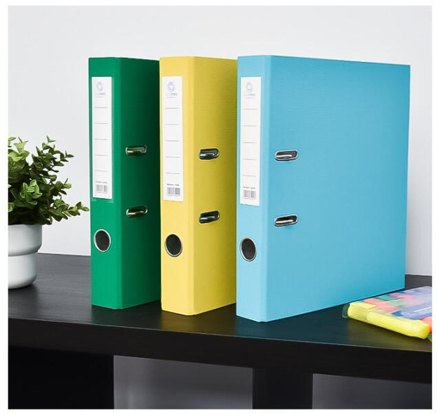 Iratrendező hétköznapi használatra! -A4 méretű dokumentumok tárolására alkalmas iratrendező -kívül környezetbarát, textilmintás PP borítás, belül fehér karton -kiváló minőségű emelőkaros lefűzőszerkezet -a bútorfelületek védelme érdekében élvédő nélküli kivitel -megerősített kihúzólyuk -kétoldalas, cserélhető címke -2 év garancia a lefűzőszerkezetre