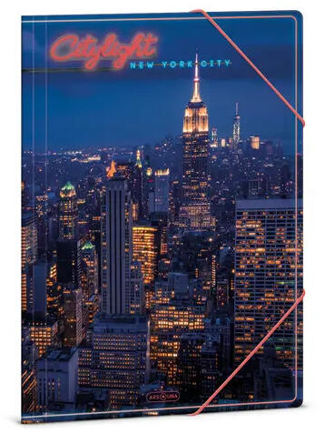 City light dosszié New York városképpel Méret: A/4-es (240x330 mm) Anyaga: 350 gr-os, vastag karton Színes gumipánttal zárható