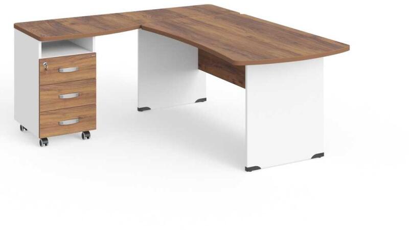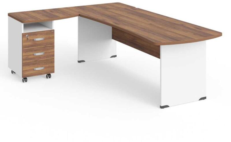 Hová fér el?A 180 x 160 cm-es Manager sarok munkahely különösen vezetői és vezetői irodákba ajánlott . Reprezentatív megjelenésének köszönhetően tökéletesen illeszkedik oda. Speciális sarokformájának köszönhetően bármilyen hely használatát lehetővé teszi. A Manager sorozat az elemek széles skáláját kínálja. Ennek köszönhetően optimálisan igazíthatja a bútor