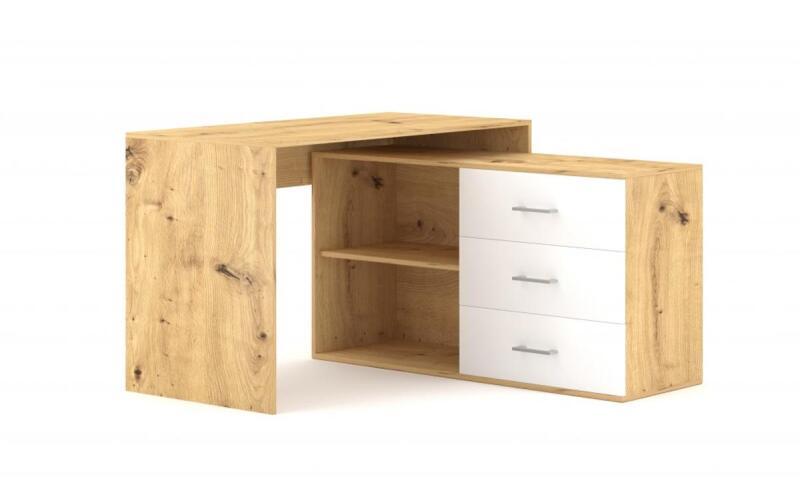 KURT SAROK ÍRÓASZTAL 3S TÖLGY ARTISAN/FEHÉR Mélység: 60, Szélesség: 120, Magasság: 75,4, - Mindigbútor