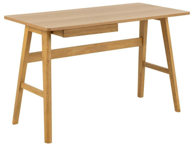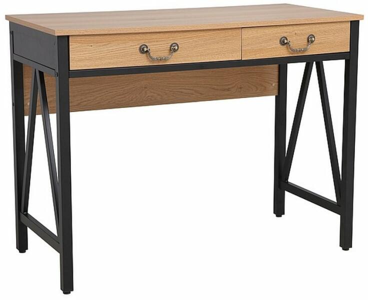 Staton íróasztal Kompakt, elegáns és praktikus – mindez a 2 fiókos Staton íróasztal. Kiválóan kiegészíti például egy kisebb munkat vagy egy diákszobát. A 100 x 48 cm-es tábla laminált anyagból készült forgácslapra, és szabványos 76 cm-es magassággal található. Közvetlenül alatta található 2 fiók dekoratív fogantyúkkal, bronz színű – ideális hely tankönyvek,