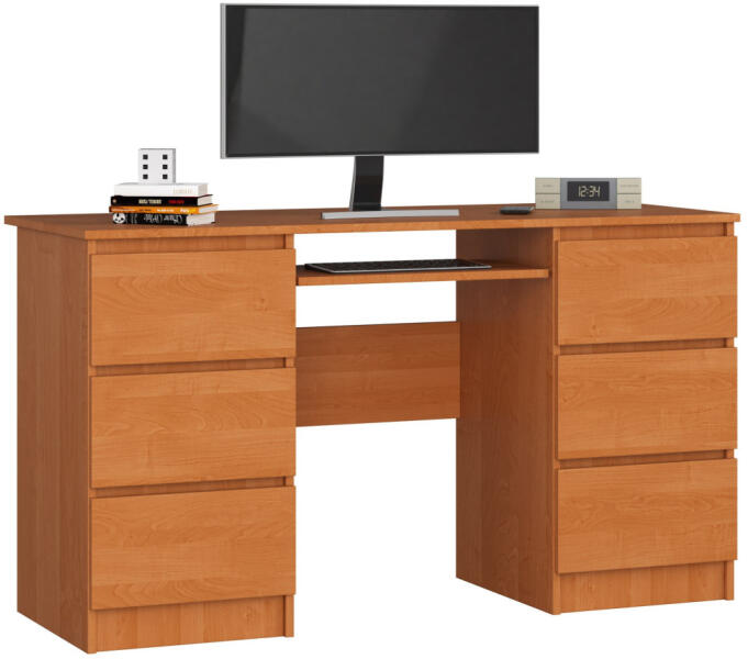 Modern, praktikus számítógépes íróasztal 6 tágas fiókkal, kihúzható billentyűzettartóval és kopásálló laminált felülettel. Az égerfa színű, 135 cm széles íróasztal tökéletes választás otthoni irodába vagy tanulósarokba. Professzionális munkakörnyezet otthonábanAz AKORD CLP A-11 számítógépes íróasztal a funkcionalitás és az elegancia tökéletes ötvözete.