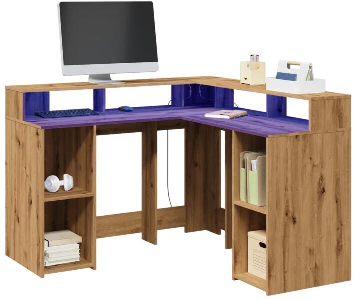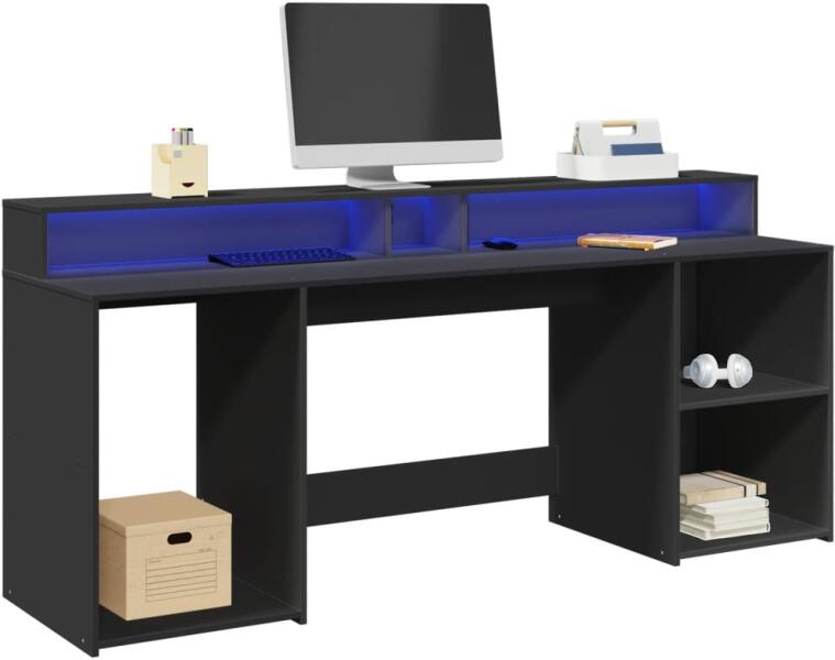 Ez a bőséges tárolóhellyel rendelkező, tartós szereketű és LED-világítással ellátott íróasztal tökéletes egy rendezett és elegáns munka- vagy játékkörnyezet kialakításához. Stabil és tartós anyag: A szerelt fa tartós és stabil anyag sima felülettel, amely ellenáll a nedvességnek, a vetemedésnek és a hasadásnak, így megbízható választás különféle célokhoz.