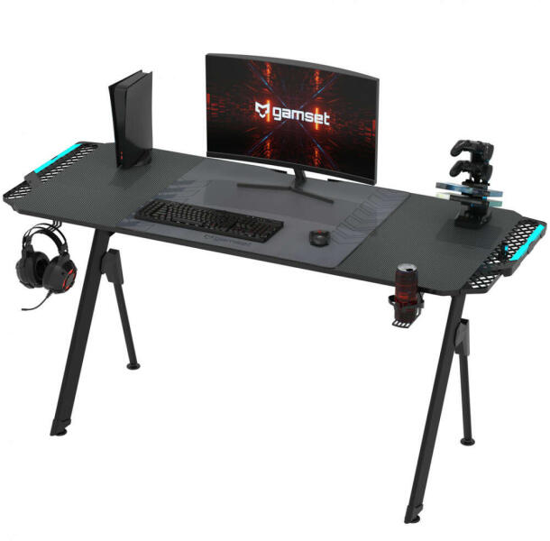 Falcon 1.4 játékasztal – ergonómia és funkcionalitás egyben, a tökéletes játékélményhez! - karbon bevonattal borított felület - változtatható színű, a helyiség hangjára reagáló LED világítás - nagy méretű csúszásgátlós egérpad / könyöklő - italtartó - 4x USB elosztós konzoltartó / töltő - fejhallgató- és pohártartó - kábelrendező polc - masszív fém
