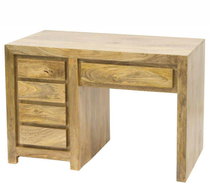 Bombay keleties stílusú 5 fiókos világosbarna erezett tömör mangófa íróasztal 80,5x120x60 cm Ez a gyönyörű Bombay keleties stílusú íróasztal a klasszikus indiai bútortervezés jegyeit hordozza, elegáns megjelenésével és praktikus kialakításával tökéletes választás lehet otthoni vagy irodai környezetbe. Az íróasztal anyaga tömör mangófa , amely garantálja a bútor