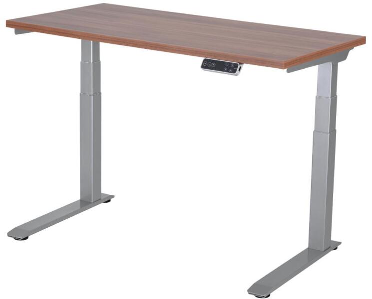 140x80 cm méretű elektromosan állítható magasságú íróasztal szürke acél vázszerkezettel, választható színű asztallappal. Várható szállítási idő: 5-10 munkanap
