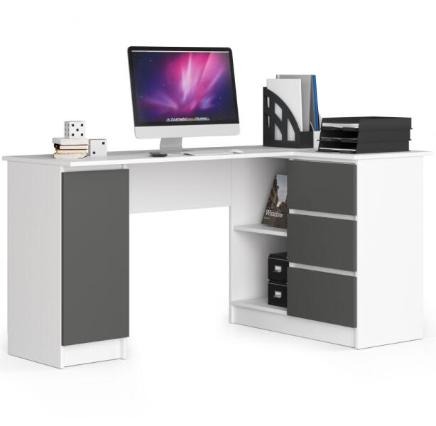Modern L-alakú sarok íróasztal praktikus tárolási megoldásokkal, amely tökéletes választás otthoni irodába vagy munkahelyre. A fehér és szürke színkombináció, valamint a beépített fiókok és polcok maximális funkcionalitást biztosítanak. Sokoldalú sarok íróasztal maximális munkaterülettelEz a modern L-alakú íróasztal tökéletes megoldást kínál a hatékony munkav