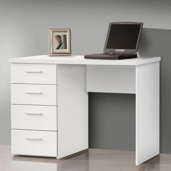 Net 106-mt935 íróasztal A klasszikus kialakítású, fehér matt asztallap teljes szilárd oldallal és hátul további megerősítéssel rendelkezik. Az íróasztal 4 fiókkal rendelkezik, amely rengeteg tárhelyet biztosít. A fiókok fogantyúval rendelkeznek. Méretek: 110x60x76,5 cm