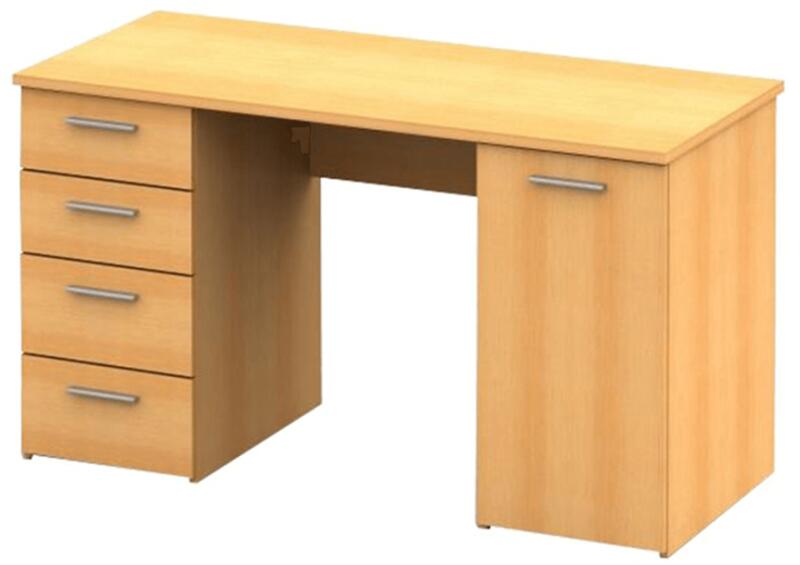 PC asztal EUSTACH NEWAnyag: DTD laminált Színe: bükk Méretek (SzéxMéxMa): 137x60x76,3 cm Felső léc vastagsága: 22 mm Szekrény méretei (SzéxMéxMa): 37,8x60x76,3 cm Négy fiók, egy szekrény A laposabb fiók magassága: 16 cm A mélyebb fiók magassága: 19,4 cm Szállítás szétszerelve Minőségi szlovák termék - Mindigbútor