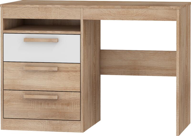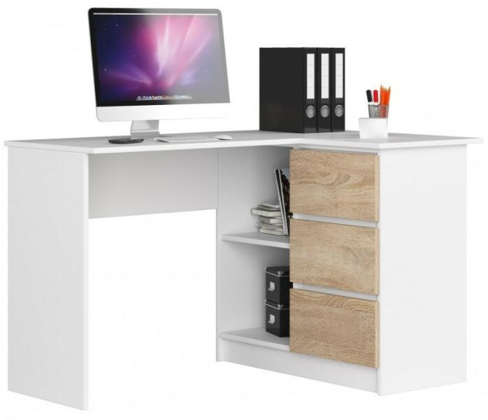 SZÁMÍTÓGÉPES ÍRÓASZTAL 3 FIÓKKAL CLP SONOMA Színkeverék - Fehér test / sonoma tölgy frontok Íróasztal 16 mm-es kopásálló laminált lapból. A látható élek kopásálló ABS élzárással. Sarok íróasztal. Méretek: Hosszúság - 124,5 cm Magasság - 77 cm Mélység - 85 cm A sarok íróasztal érdekes megoldás mind lakóhelyiségekbe, mind irodai környezetbe. Kevés helyet fo