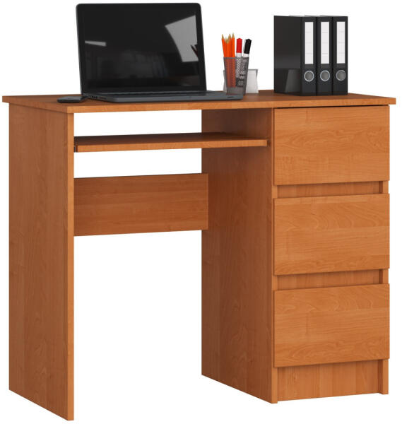 Kompakt és praktikus égerfa számítógépasztal 3 fiókkal és kihúzható billentyűzettartóval. A 16 mm-es laminált lapból készült, karcolásálló felülettel és ABS élzárással rendelkező íróasztal tökéletes választás otthoni vagy irodai használatra. Kompakt és sokoldalú számítógépasztal modern designnalAz AKORD CLP A-6 számítógépasztal a funkcionalitás és az esz