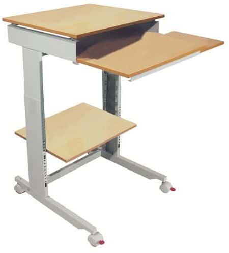 A visszahúzható billentyűzet- és egértartó (50-60 cm) állítható magasságú, és jó munkapozíciót kínál. A nyomtató és a számítógéptorony polcai a kívánt magasságra (72-110 cm) állíthatók és állíthatók. Két fékezett görgő tartja biztonságosan a helyén a számítógép egységet.