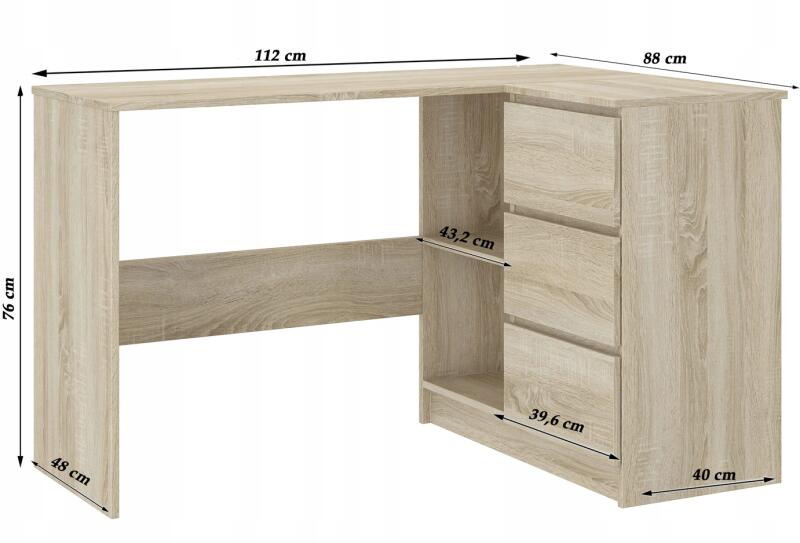Irodai íróasztal JOHAN NEW 02Szín: sonoma tölgy Anyag: DTD laminált Méretek (SzxMéxMa): 100x67,5x73,5 cm Anyagvastagság: 16/22 mm Szlovák termék Bontásban szállítva - Mindigbútor