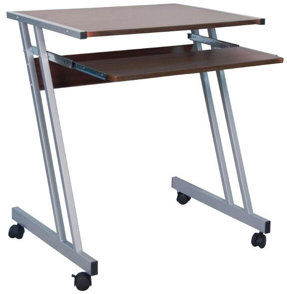B-233 íróasztal B-233 íróasztal B-233 stílusos fémvázas görgős íróasztal, dió asztallappal, billentyűzettartóval. Méret (SzéxMaxMé): 60 x 73 x 48 cm Szín: Fém/dió