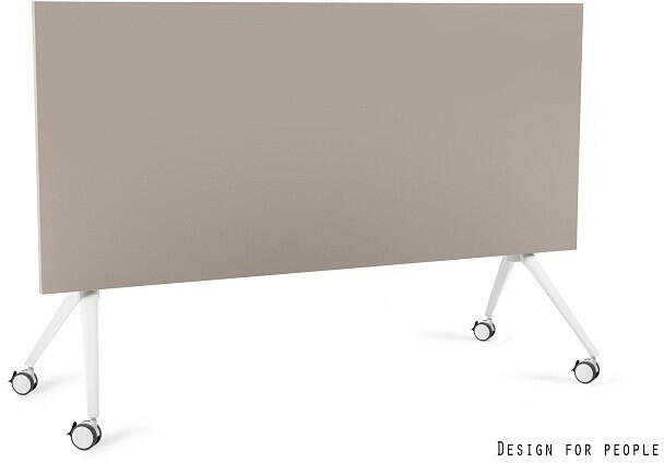 UNIQUE Carl görgős asztal Helytakarékos, lehajtható asztallap Asztallap MFC lapból (kétoldalas melamin), 25 mm vastag, bézs színben FSC minősítésű asztallap Egységes színű ABS műanyag él, felső felülettel Fémből készült porszórt fehér keret Alumínium lábak A keret központi összecsukható rendszerrel rendelkezik, biztonsági zárral, amely megakadályozza az összecsuk