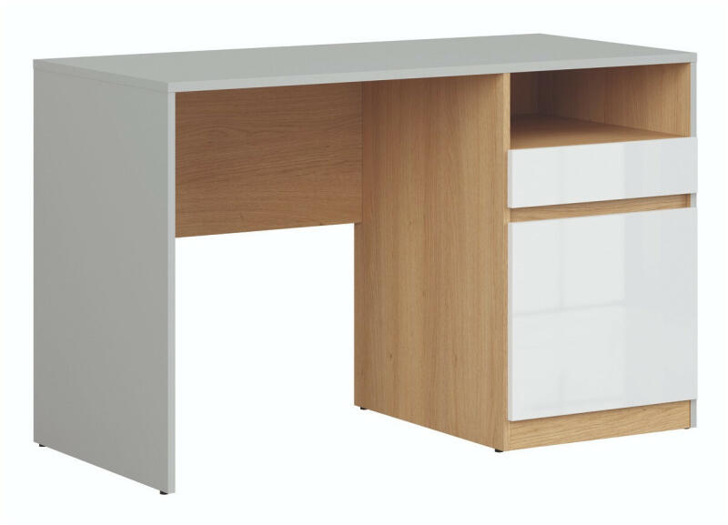 Alda Iceglossy - Íróasztal Faktum Alda Iceglossy - Íróasztal Az ifjúsági bútoraink egyik alapdarabja. Ideális magasságú íróasztal, így sokáig díszítheti a gyermekszobát. A felső rész fiókos, az alsó rész pedig ajtós, ami mögött egy polc található, így még a könyveknek is lesz helye. Az ajtó és a fiók beépített kilökő szerkezettel szereltek. Gyártási idő: 4-6