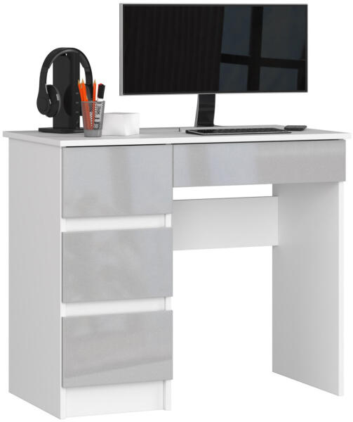 Modern, kompakt íróasztal négy fiókkal, amely tökéletes választás fiatalok számára. A fehér és metál magasfényű kivitel elegáns megjelenést kölcsönöz, miközben praktikus tárolási megoldásokat kínál. Kompakt és stílusos munkaterület modern designnalAz AKORD CLP íróasztal egy kifinomult bútordarab, amely ötvözi a funkcionalitást és az esztétikát. A 90 cm széles