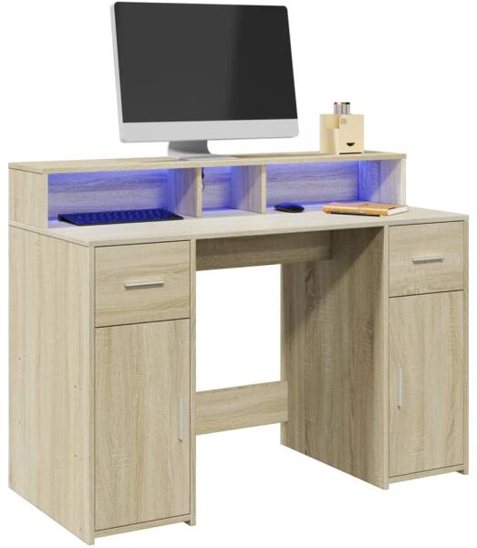 Ez a bőséges tárolóhellyel rendelkező, tartós szereketű és LED-világítással ellátott íróasztal tökéletes egy rendezett és elegáns munka- vagy játékkörnyezet kialakításához. Stabil és tartós anyag: A szerelt fa tartós és stabil anyag sima felülettel, amely ellenáll a nedvességnek, a vetemedésnek és a hasadásnak, így megbízható választás különféle célokhoz.