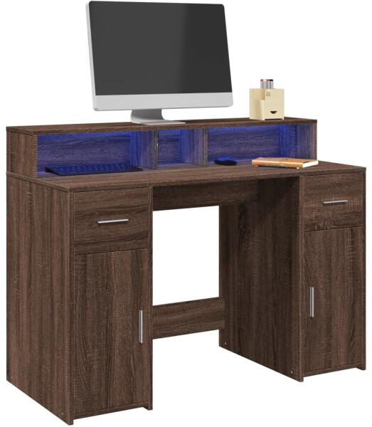 Ez a bőséges tárolóhellyel rendelkező, tartós szereketű és LED-világítással ellátott íróasztal tökéletes egy rendezett és elegáns munka- vagy játékkörnyezet kialakításához. Stabil és tartós anyag: A szerelt fa tartós és stabil anyag sima felülettel, amely ellenáll a nedvességnek, a vetemedésnek és a hasadásnak, így megbízható választás különféle célokhoz.