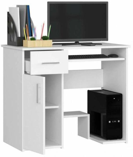 Számítógép asztal, laminált lap, 1 fiók, 3 polc, fehér, 90x50x74 cm, Jay Szenvedélyes játékos vagy, vagy kényelmes íróasztalt keresel? Ha a válasz igen, akkor jó helyen jár. A számítógépes asztal azoknak készült, akiknek megfelelő helyre van szükségük munkához, tanuláshoz vagy szórakozáshoz. Színe most nem csak nagyon divatos, de jól passzol a szoba színeihez. Az
