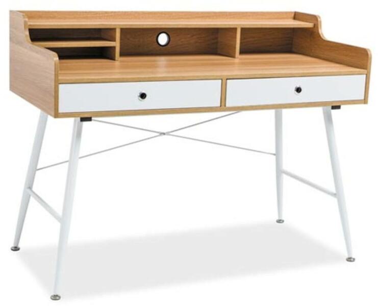 Bútorok ABC szerint > Irodabútor > Íróasztal - B-160 íróasztalÍróasztal fehér fém lábakkal, Tölgy, fehér MDF asztallappal, és fiókokkal. Méret: 93 cm 56 cm 123 cm