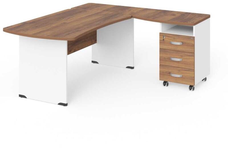 Hová fér el?A 180 x 160 cm-es Manager sarok munkahely különösen vezetői és vezetői irodákba ajánlott . Reprezentatív megjelenésének köszönhetően tökéletesen illeszkedik oda. Speciális sarokformájának köszönhetően bármilyen hely használatát lehetővé teszi. A Manager sorozat az elemek széles skáláját kínálja. Ennek köszönhetően optimálisan igazíthatja a bútor