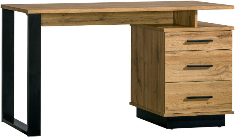 Modern kialakítású íróasztal beépített polcrendszerrel, amely tökéletes választás kisebb terekbe. A tölgy színű MDF asztallap és a matt fekete fém váz elegáns kombinációja praktikus tárolási megoldást kínál. Kompakt és sokoldalú íróasztal tárolópolcokkalA B-036 íróasztal tökéletes választás kisebb terekbe, modern dizájnjával és praktikus kialakításával. A