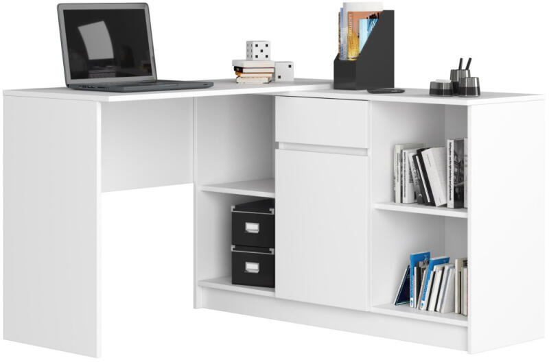 Modern sarok íróasztal beépített tárolószekrénnyel, amely tökéletes megoldást kínál kis terekbe. A fehér matt kivitel és a sokoldalú tárolási lehetőségek praktikus és stílusos munkakörnyezetet teremtenek. Innovatív Sarok Íróasztal Megoldás Kis TerekbeEz a modern sarok íróasztal kombináció tökéletesen ötvözi a funkcionalitást és a stílust. A fehér színű, lami