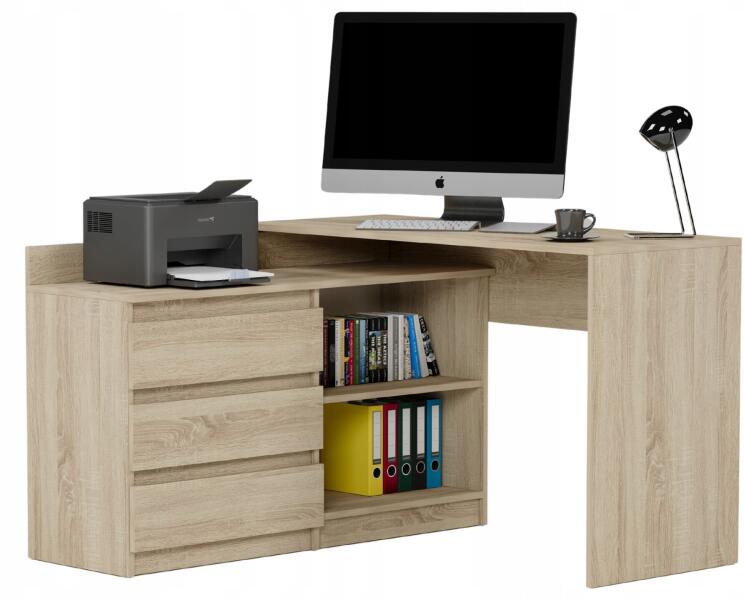 Stílusos íróasztal a MODERN kollekcióból, azoknak készült, akik értékelik a modern stílust és eleganciát. Megújítja minden stúdió, iroda vagy ifjúsági szoba belsejét. A design minimalista, de masszív és tartós. Az ergonómikus méretek biztosítják a helyiség egyszerű berendezését. Három praktikus fiók és két polc elegendő helyet biztosít dokumentumok, irodaszerek