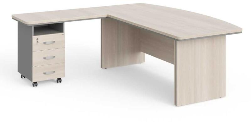 Hova fér el? A Visio LUX ergonomikus, 136 x 100 cm-es íróasztal különösen alkalmazottak és alsóbb vezetők irodáiba ajánlott. Színkialakításában különbözik a normál Visio verziótól, amikor Visio Különleges kivitelben, szürke testtel kínáljuk a LUX-ot. A Visio LUX sorozat az elemek széles választékát kínálja. Ennek köszönhetően optimálisan igazíthatja a bútorké