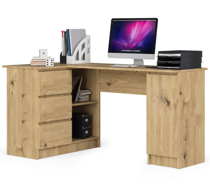Modern, L-alakú íróasztal 3 fiókkal és tágas munkafelülettel, amely tökéletes választás otthoni irodába vagy gyerekszobába. Az Artisan tölgy kivitel és a praktikus tárolási megoldások egyesítik a funkcionalitást az elegáns megjelenéssel. Sokoldalú sarok íróasztal maximális kényelemmelAz AKORD B20 sarok íróasztal egy kifinomult bútor, amely egyesíti a praktikus kialak